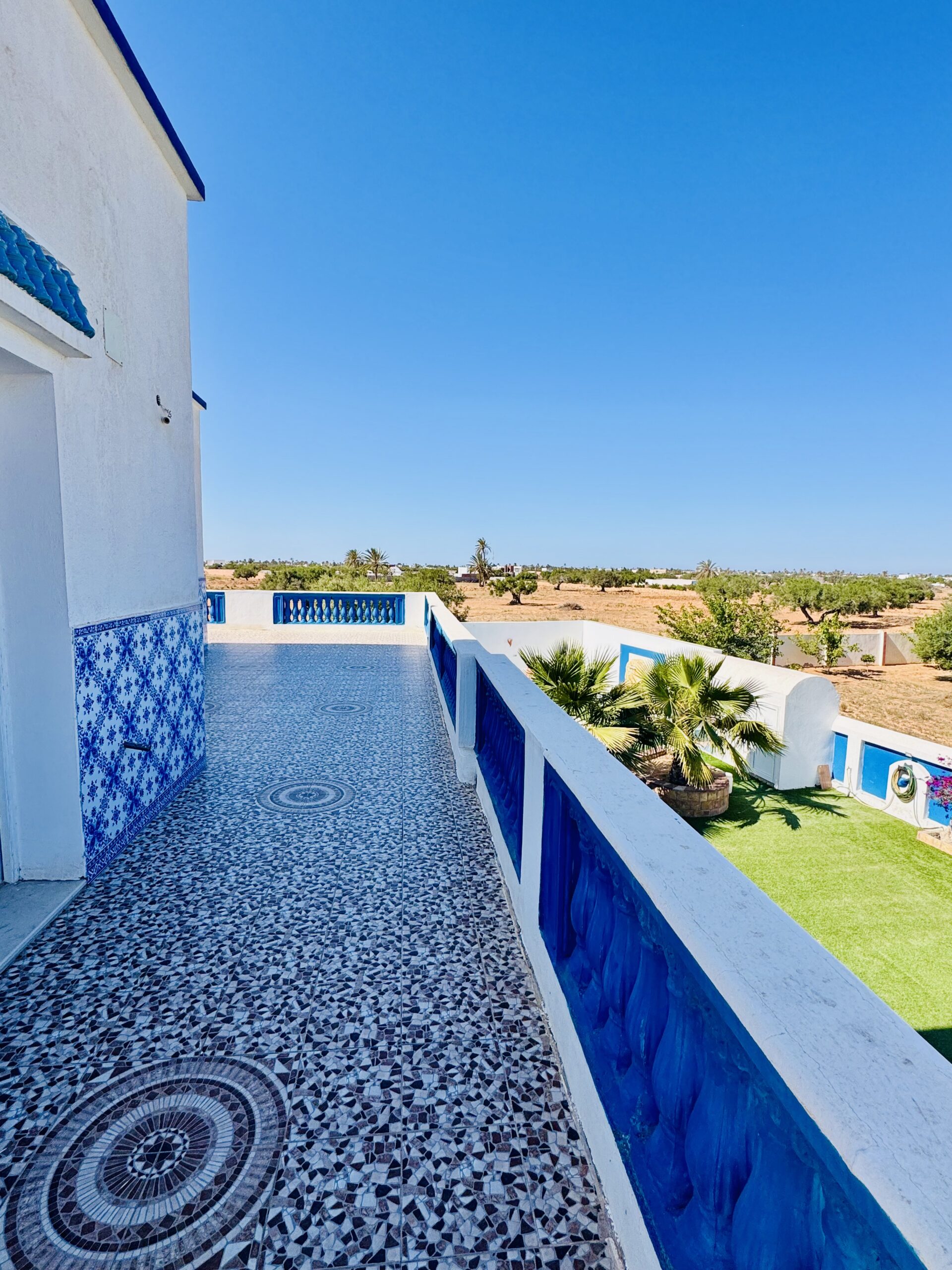 • Terrasses ensoleillées offrant des vues magnifiques sur les palmiers et oliviers pour des moments de détente.