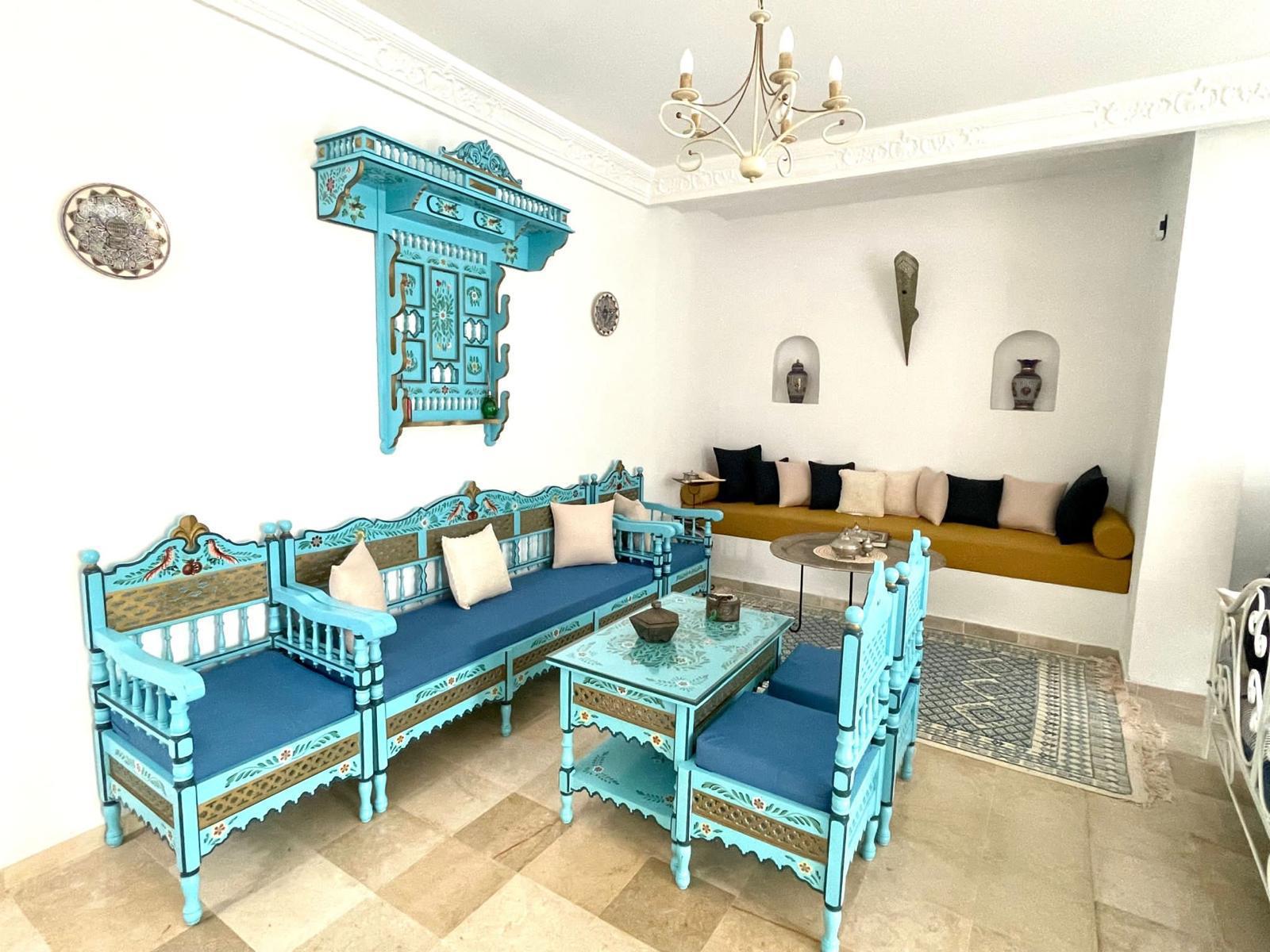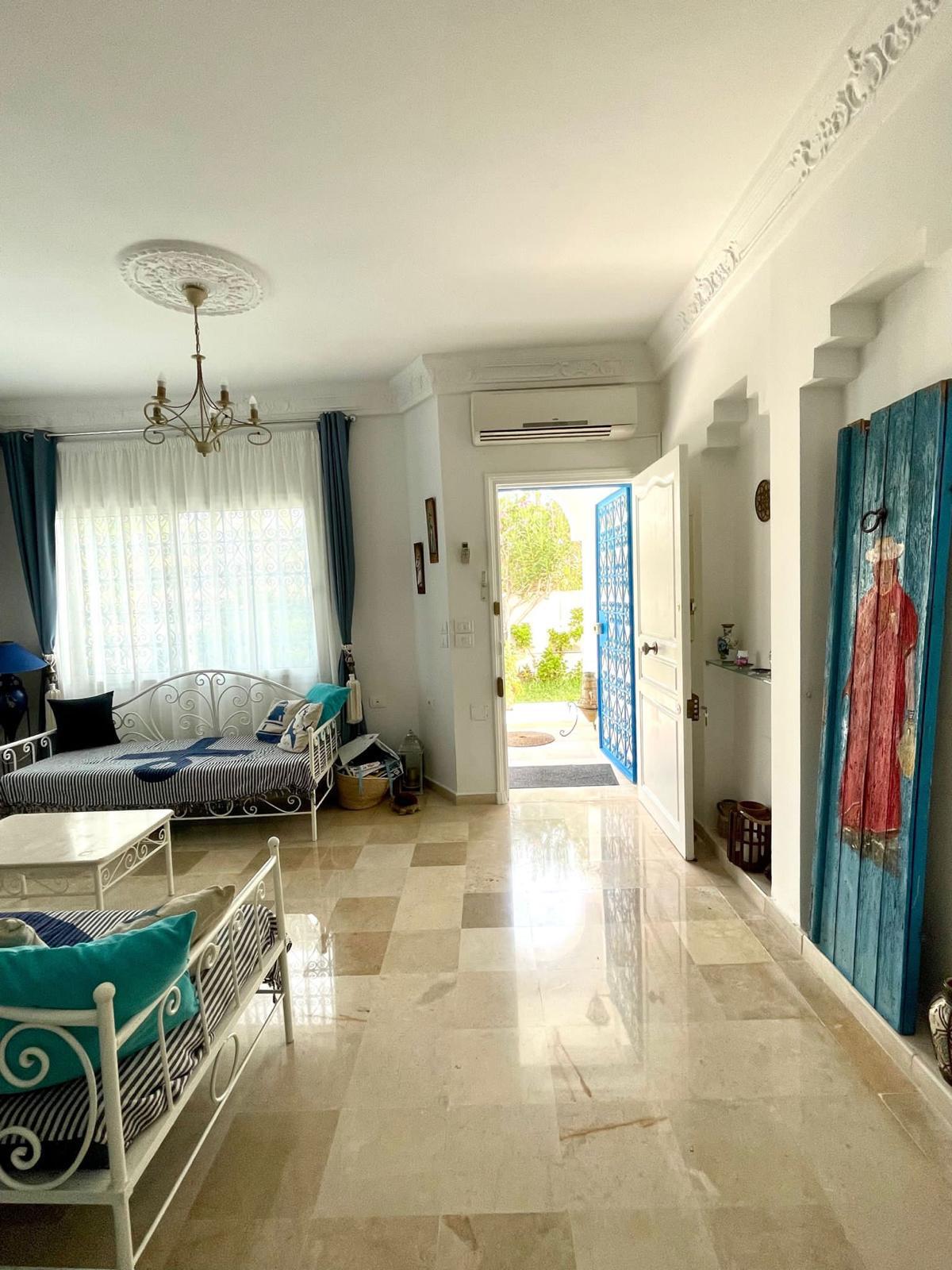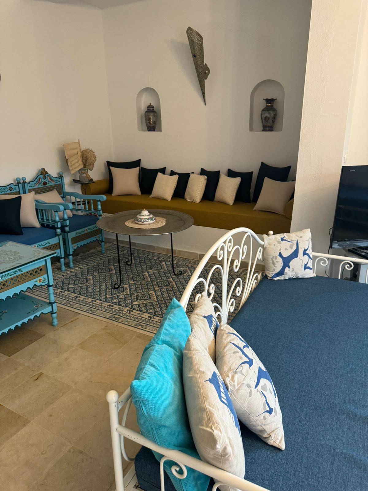 Capacité 4 personnes – Zone Touristique Charmante Maison Tunisienne, idéalement située Face au Restaurant El Majless, commerces et restaurants accessible à pied.