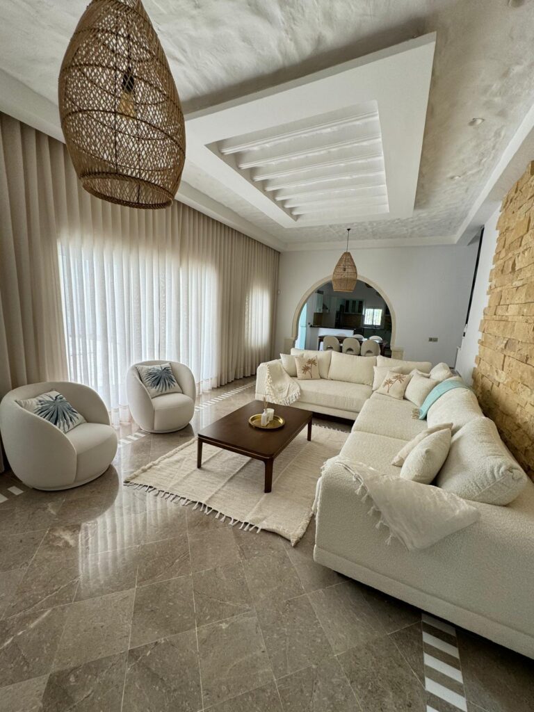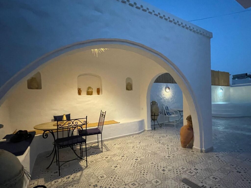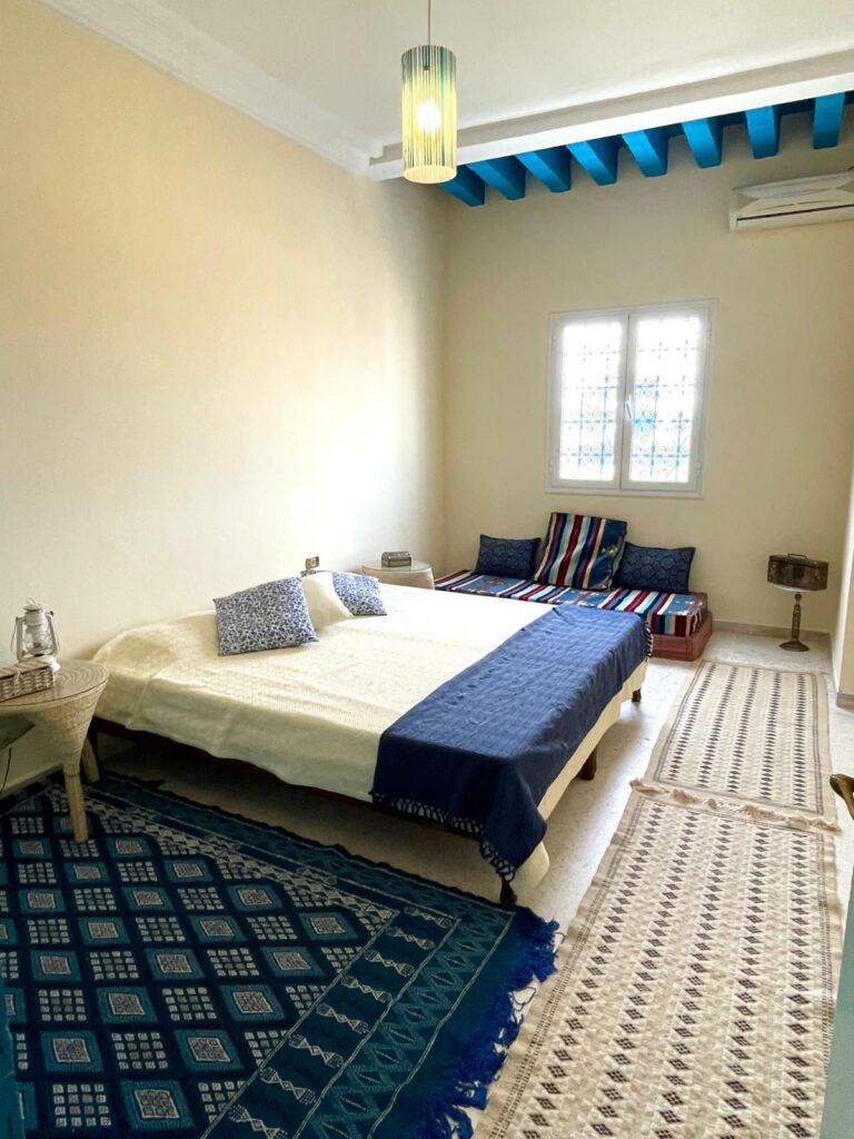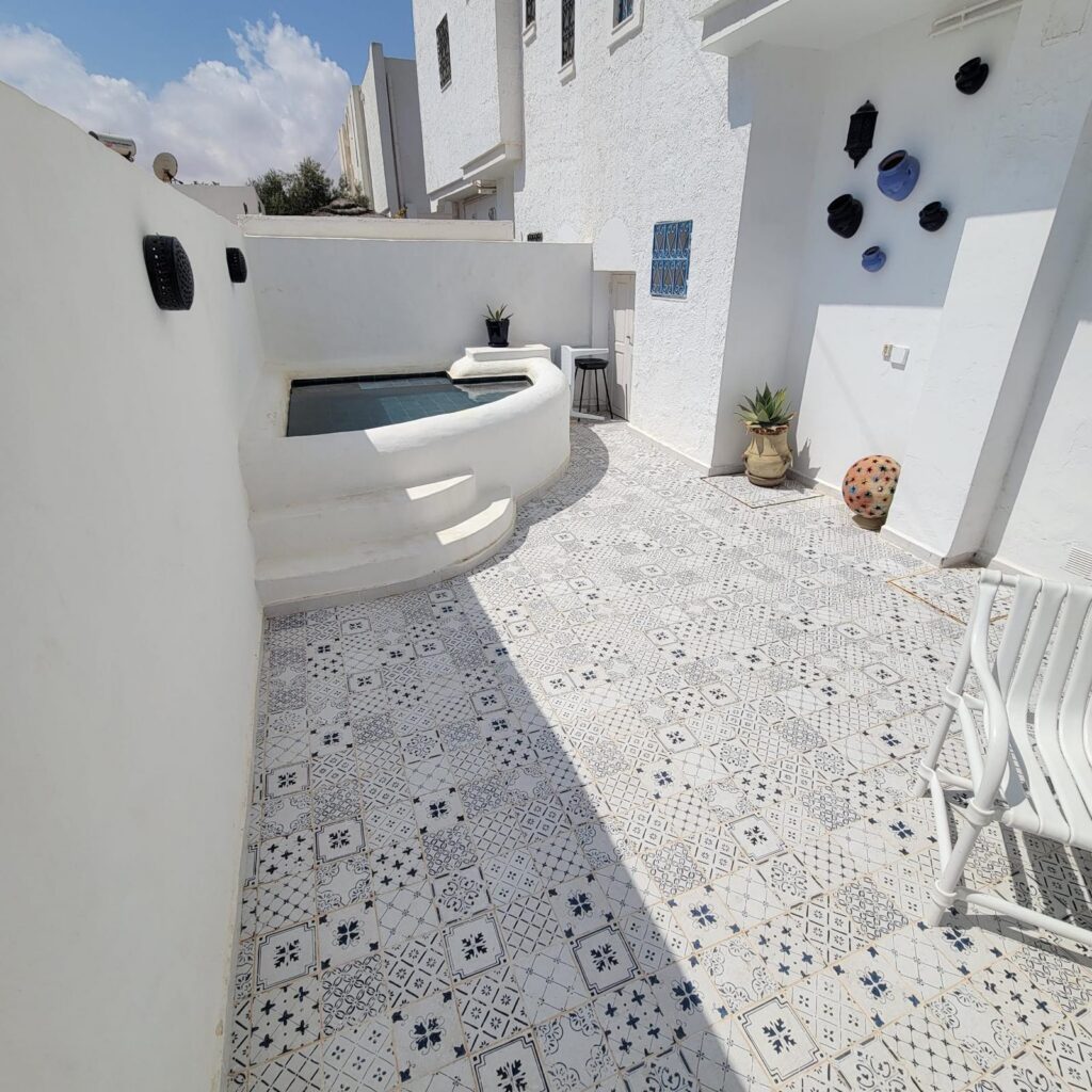 Capacité 4 personnes – Zone Touristique Charmante Maison Tunisienne, idéalement située Face au Restaurant El Majless, commerces et restaurants accessible à pied.