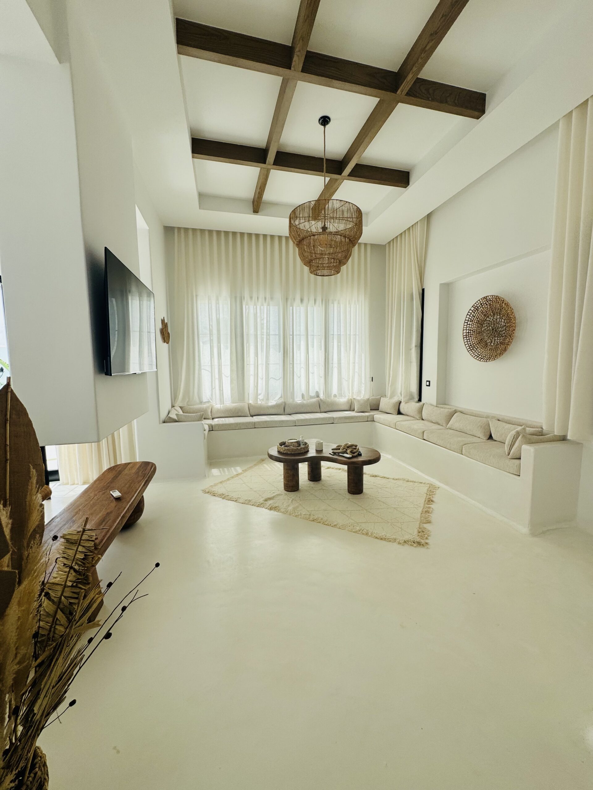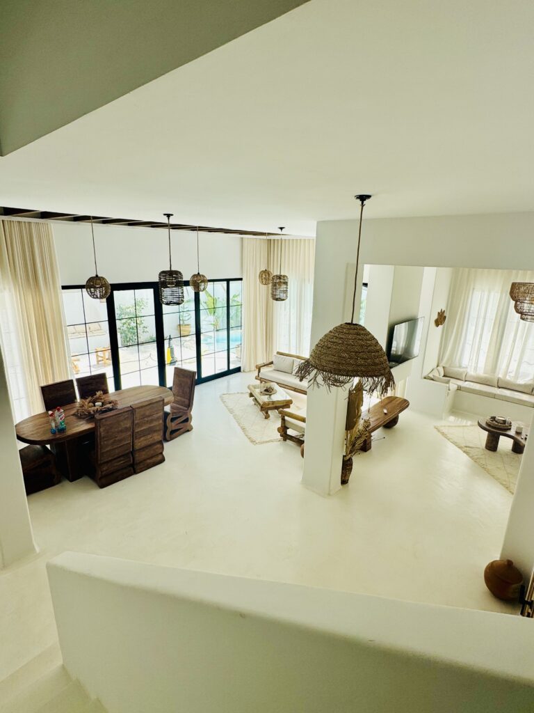 Les quatre chambres doubles spacieuses et lumineuses vous offrent un cadre idéal pour la détente et le repos. Le salon, baigné de lumière grâce à ses grandes fenêtres, est un espace parfait pour se relaxer tout en admirant la vue sur le jardin luxuriant et la piscine étincelante.